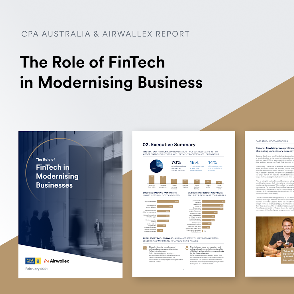 Global fintech unicorn Airwallex and Australia’s leading professional accounting body CPA Australia, launched the ‘The Role of FinTech in Modernising Businesses’ report today, which aims to educate businesses on emerging fintech solutions, and ultimately drive fintech adoption.