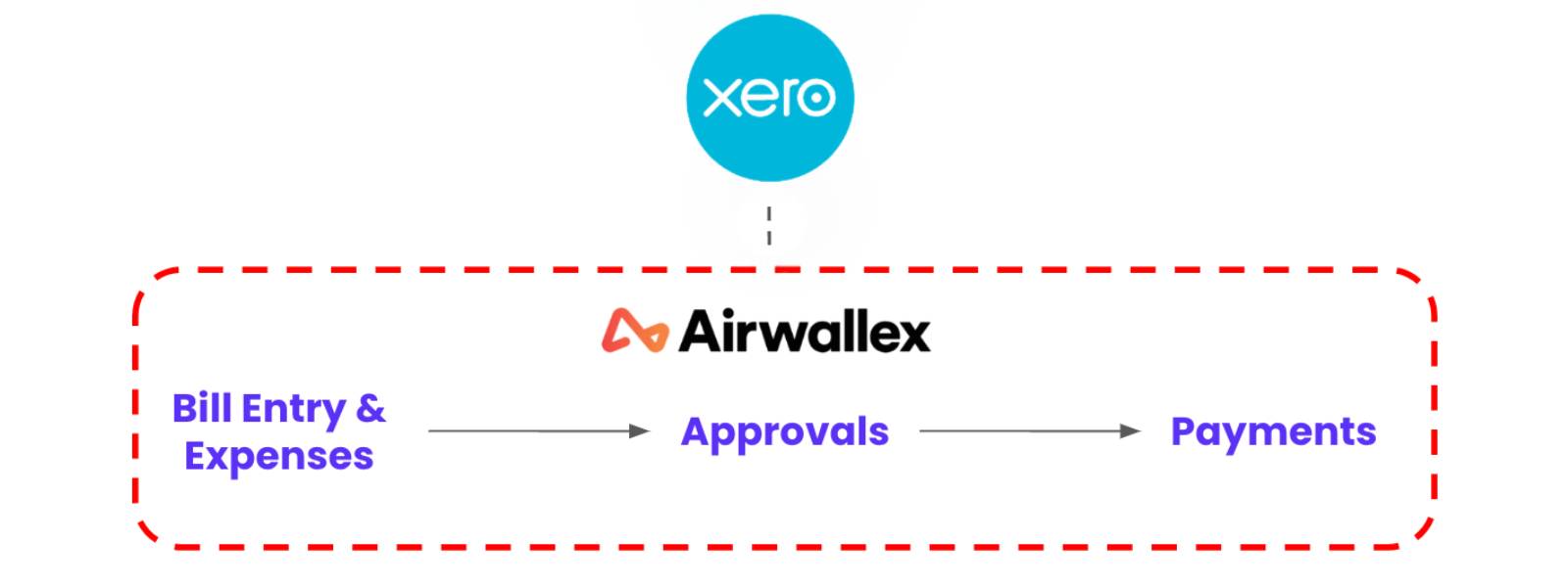 The Airwallex and Xero payment workflow operates through a more holistic integration, with all bills and expenses moving through Airwallex, with data transferring through Xero every step of the way.