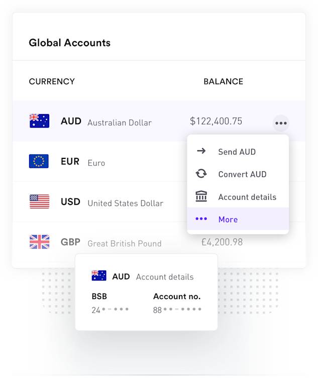 Open and manage Global Accounts in 11 currencies