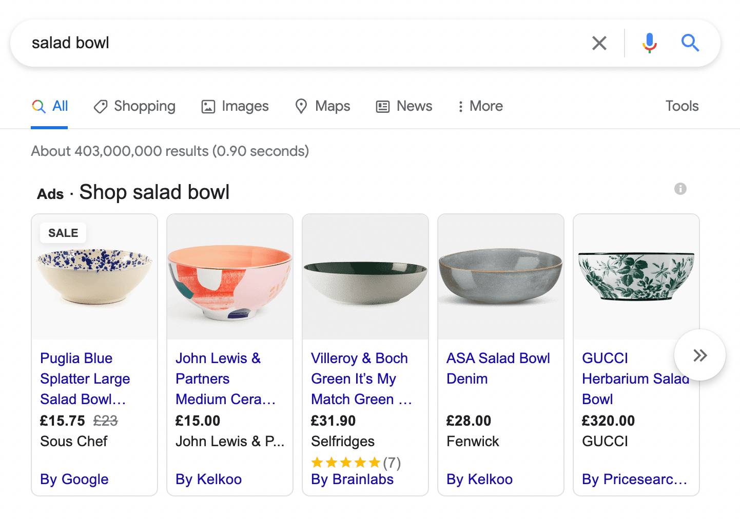 For example, if your business sells homeware, Dynamic Search Ads will target customers who search ‘salad bowl’ with a headline and image from your website, such as ‘Green Ceramic Salad Bowl’. When a customer clicks the advert, they will be taken directly to the landing page where they can buy the bowl.
