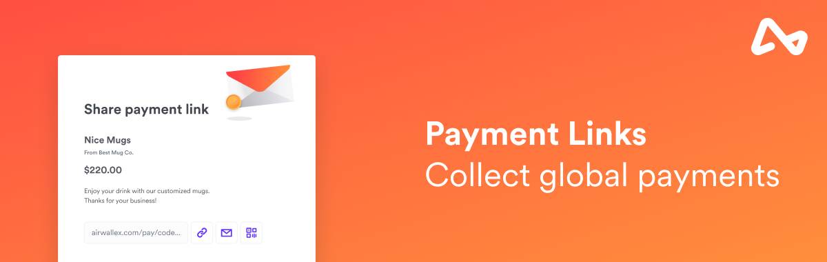 Generate a one-time or reusable link or QR code and let your customers pay in 130+ currencies, while the funds settle in your preferred currency. It’s the easiest way to deliver a great customer experience and reduce your debtor days.