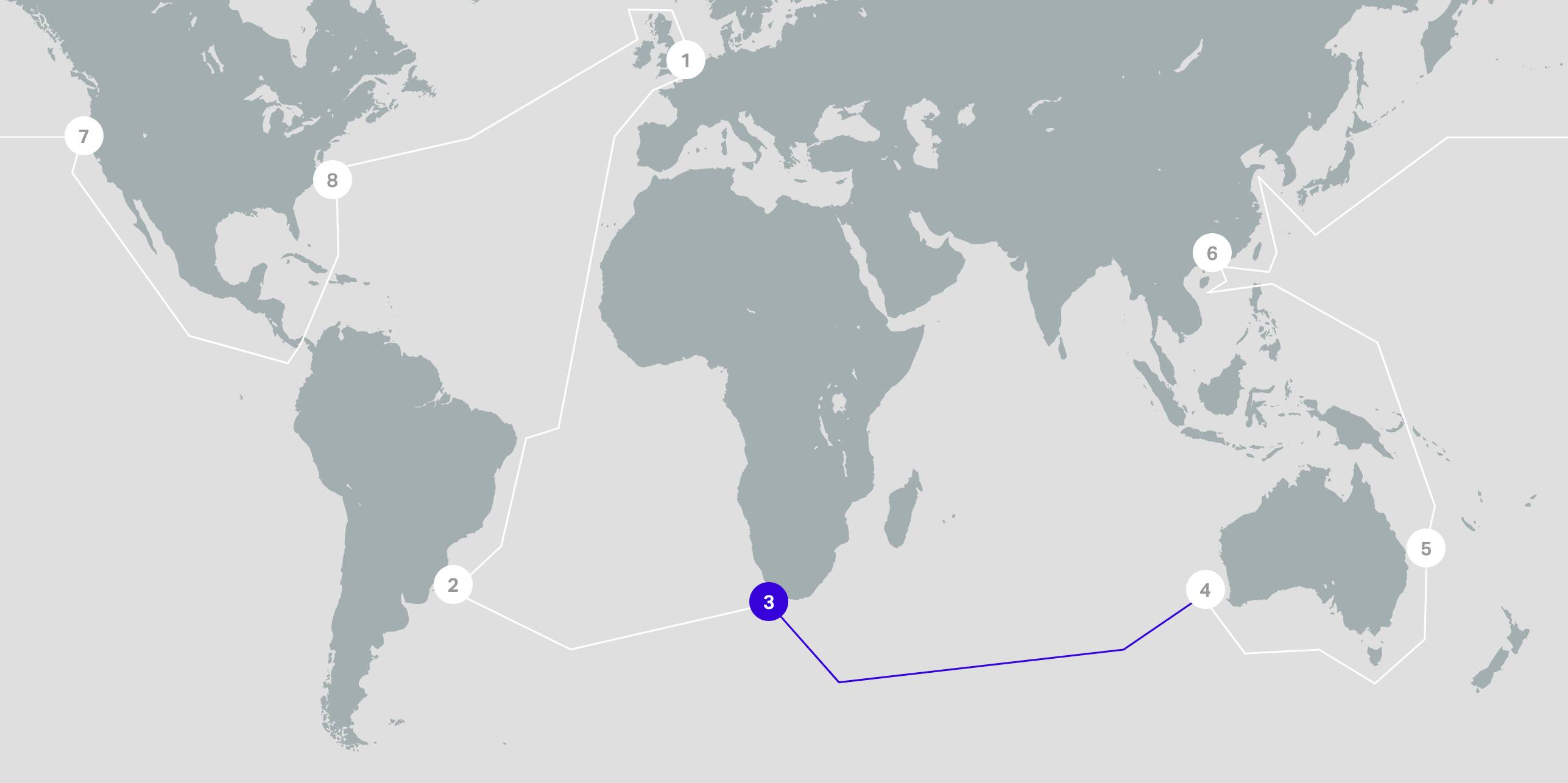 The Roaring Forties (Southern Ocean) leg from Cape Town to Fremantle in the Clipper Race.