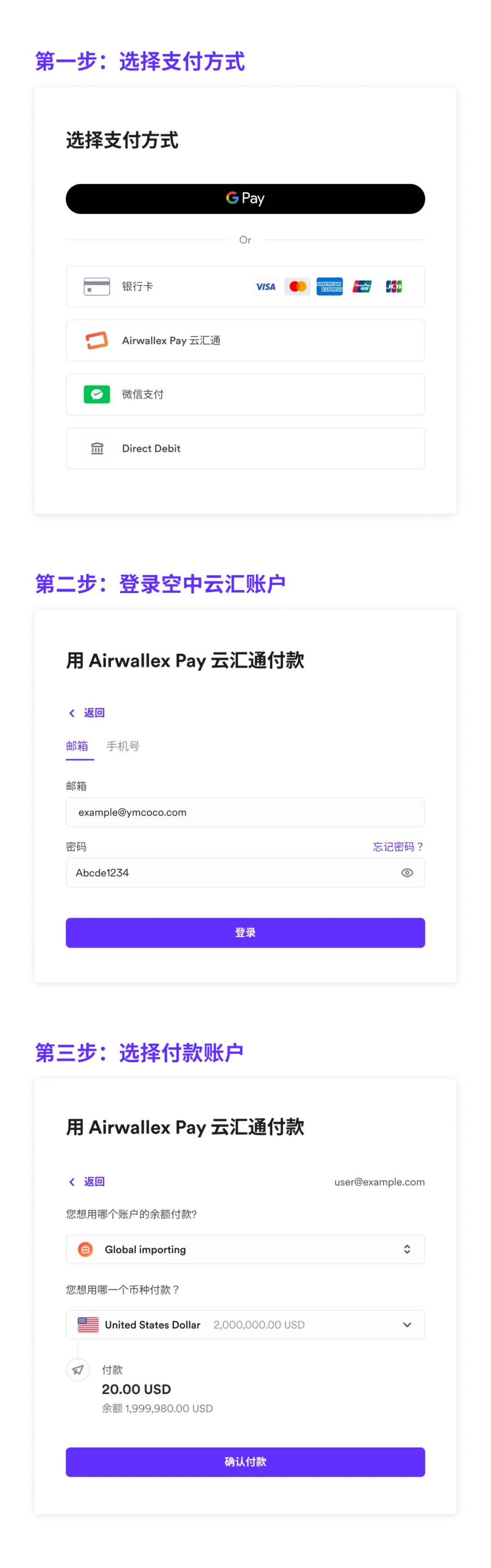 您的顾客可以通过 Airwallex Pay 云汇通更顺畅、更低成本地向您付款——
