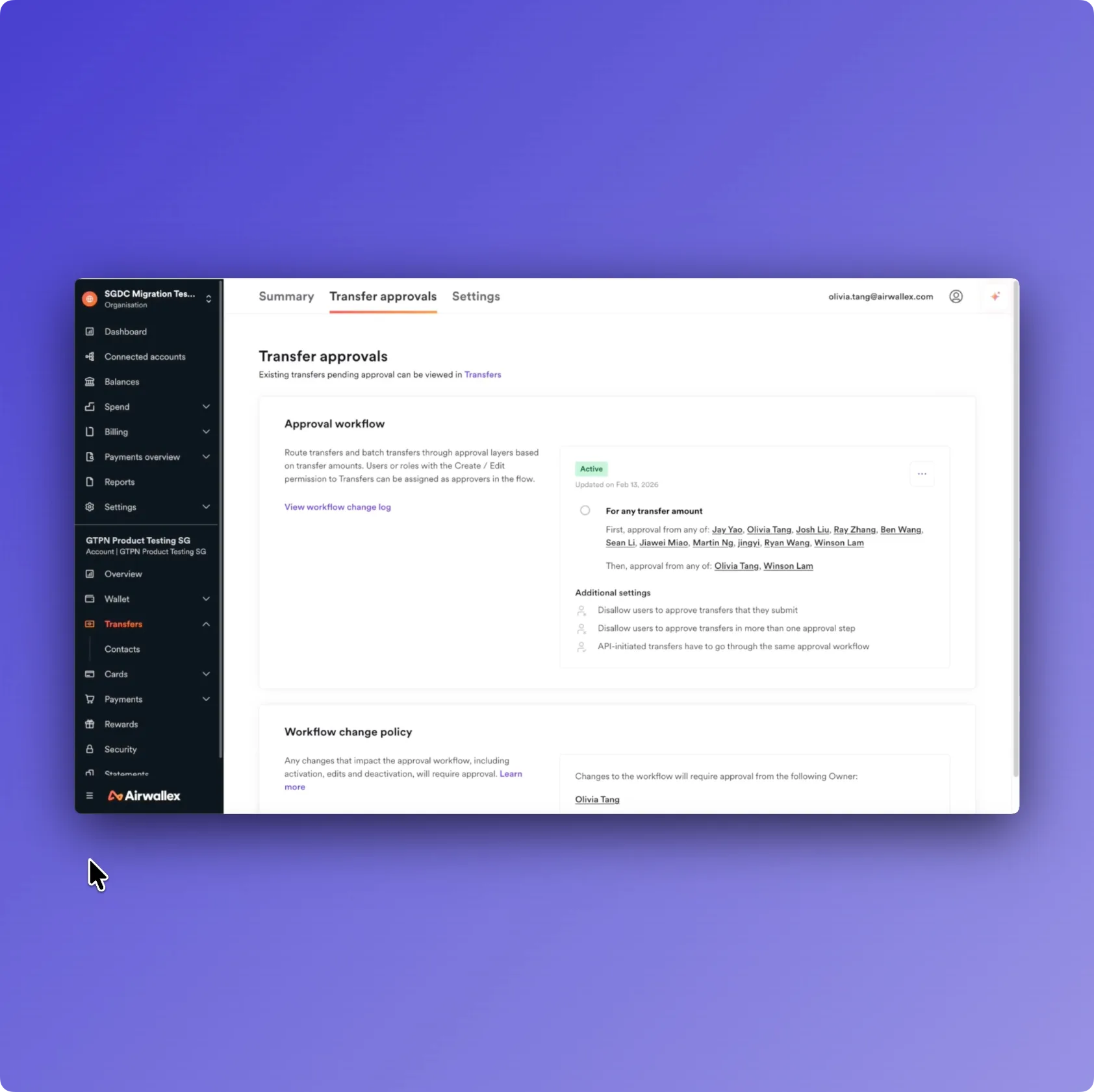 通过更智能的流程配置,Airwallex 空中云汇在保障资金安全合规的同时,为您打造无感、顺畅的审批操作体验,让合规与效率并行。
