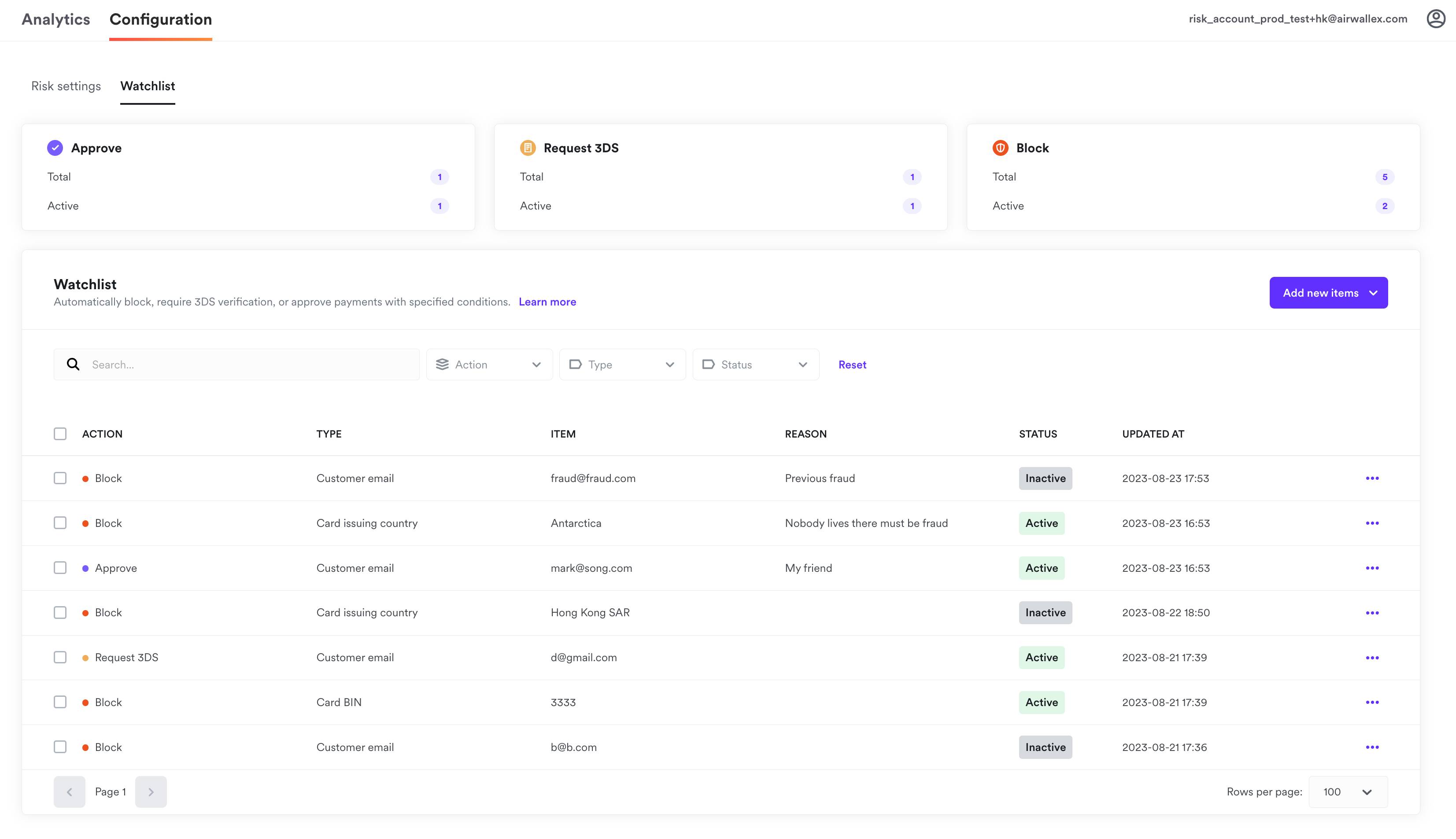 如果您已激活了Airwallex空中云汇的线上收单服务,您可以直接在您的网页客户端访问新的风险控制面板。如需了解更多线上收单产品信息,请立即注册或咨询您的客户经理。