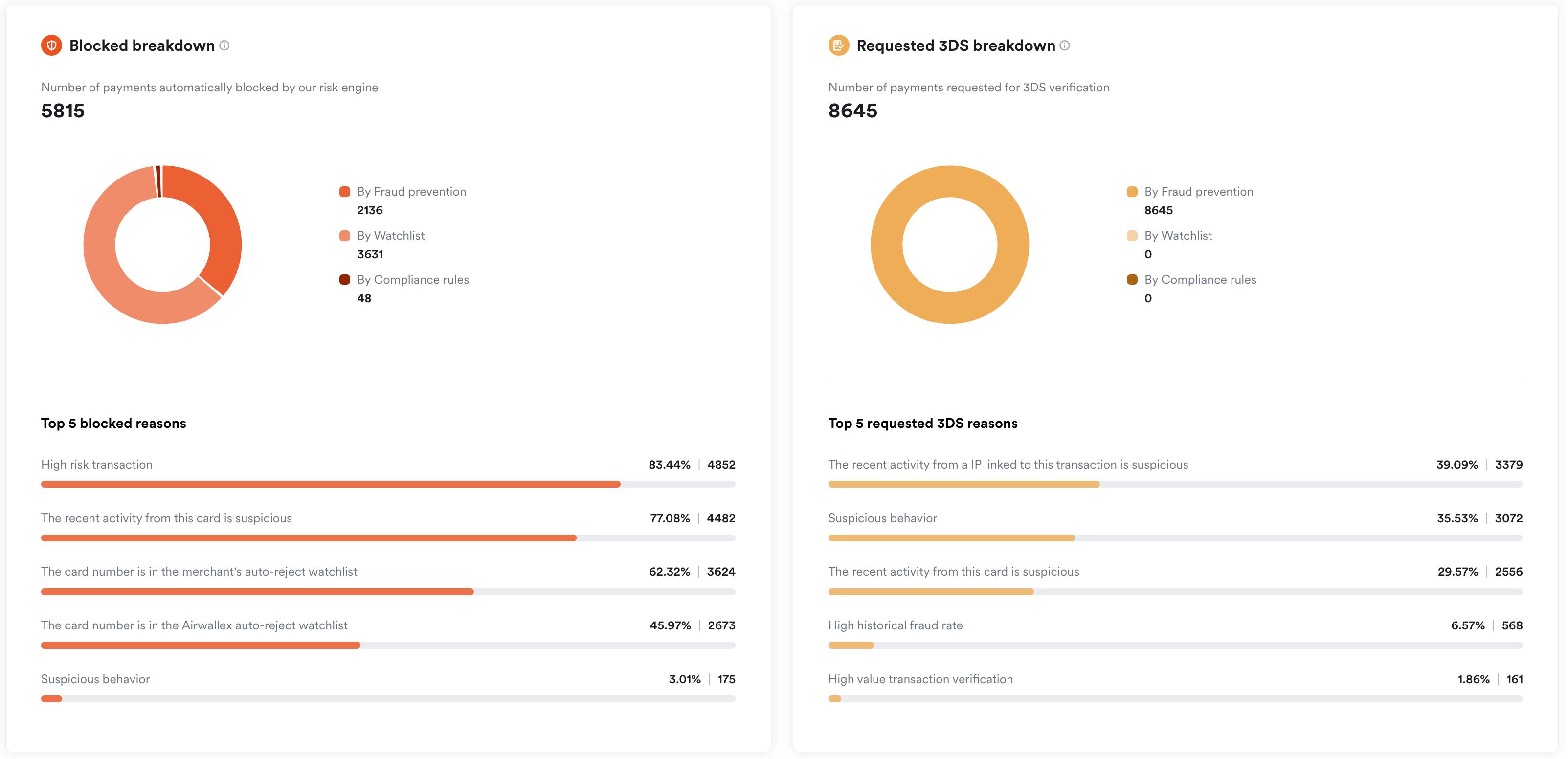 除了直观、易操作的风控面板外,Airwallex还拥有强大的收单风控基础设施,可帮助商户高效打击全球信用卡欺诈。
