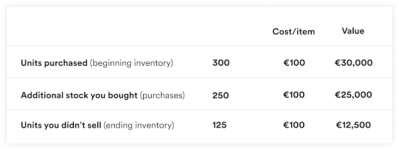 Finally, you need to know how much stock you had at the end of this period. This is your ending inventory, i.e. items you didn’t sell.