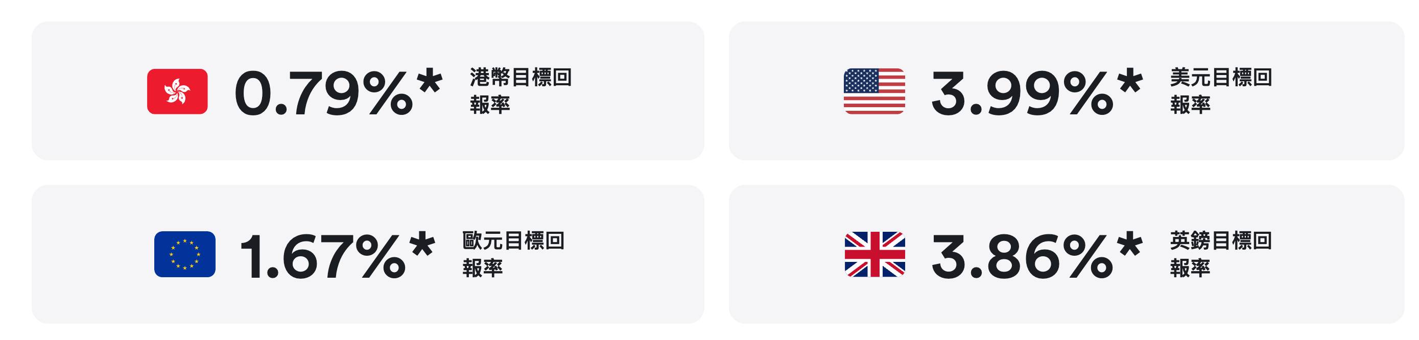 我們投資的基金包含多元化的資產組合,包括由全球主要銀行發行的金融工具,旨在同時提供資本穩定性及流動性,回報一般會與這些貨幣的中央銀行所設定之利率保持一致。