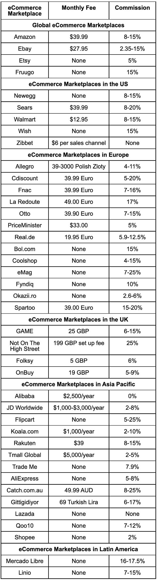 First, we’ll break down each marketplace based on the monthly fees and commission rates.