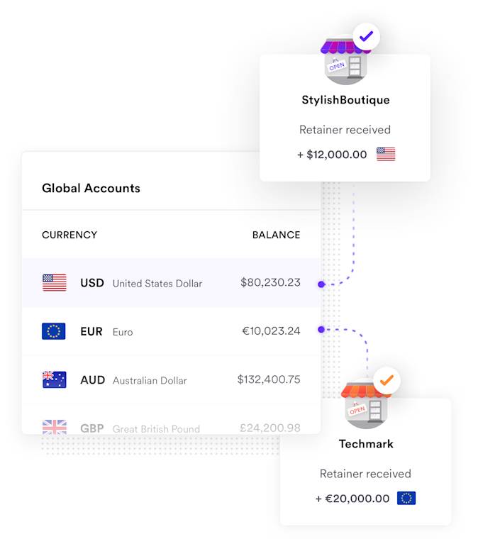 Collect and hold currencies with your multi-currency wallet. Avoid double conversions and hedge against currency fluctuations.