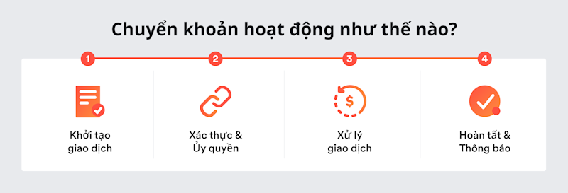 Quy trình chuyển khoản cơ bản bao gồm các bước sau: